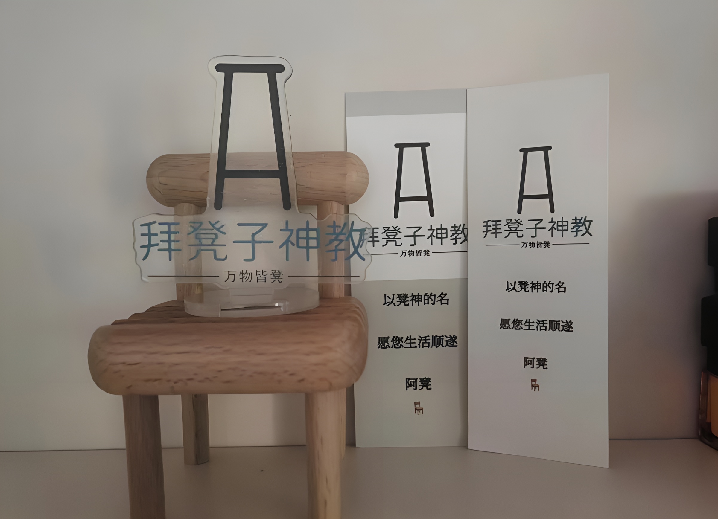church of the spirit of seat 拜 凳 子 神 教 了解更多 太初有道,道与神同在,道就是“请坐” - 《板凳福音》1:1 关于我们的重要的事 基础教义一切物体都是凳子。凳子由更小的凳子构成。伟大的凳神赐予了人类自由意志,人类应该珍惜自己的幽默感。 了解更多 凳神最舒服最完美的凳子,是凳子理念的集合,以自己为蓝本创造了这个宇宙。人类精神世界的化身。 了解更多 高山是云朵的凳子,云朵是飞鸟的凳子。墓碑是记忆的凳子,子宫是生命的凳子 - 《箴言篇》2:4 欢迎来到拜凳子神教 作为最具活力的新兴宗教之一,拜凳子神教(凳教)以其独特的魅力吸引着世人。我们的大门永远敞开,诚邀您前来了解。若您心有所感,欢迎加入我们这个充满希望的信仰团体。 有正当的理由席地而坐🧘🏻♀️无会费🆓传承木匠工艺🪚来世的人体工学椅🪑 了解更多 即将会有的东西 因为凳神的道理才刚刚开始传播,我们不得不忍受最开始这段乏味而苍白的时间。 然而我们还是可以对未来作出乐观的展望和预测:我们的教堂、官方牧师认证卡片、文化衫和徽章等等。甚至那可能的,拜凳子神教在世界上被认证为正式宗教的一天。 现在,我们已经试印了一批书签和立牌作为赠礼送出,广受信众好评。 了解更多